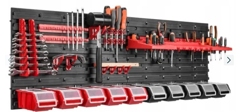 Панель інструментів 115*39 см + 10 контейнері з кришкою - практичний спосіб організації майстерні, гаража, складу чи підсобного приміщення.